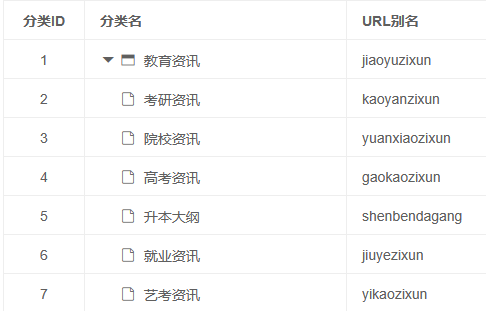 如上图,则内容URL格式为 jiaoyuzixun/id.html,如果内容所属分类无上级分类,则和系统后台选择的内容URL一致。