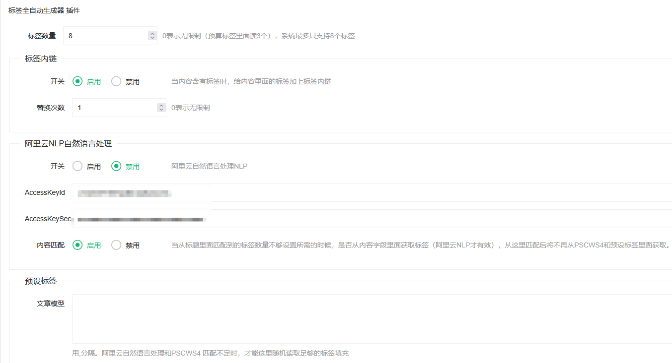 对无标签的内容自动生成标签(处理顺序 -> 1、阿里云自然语言处理;2、PSCWS4;3、预设标签)